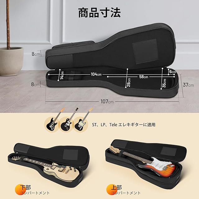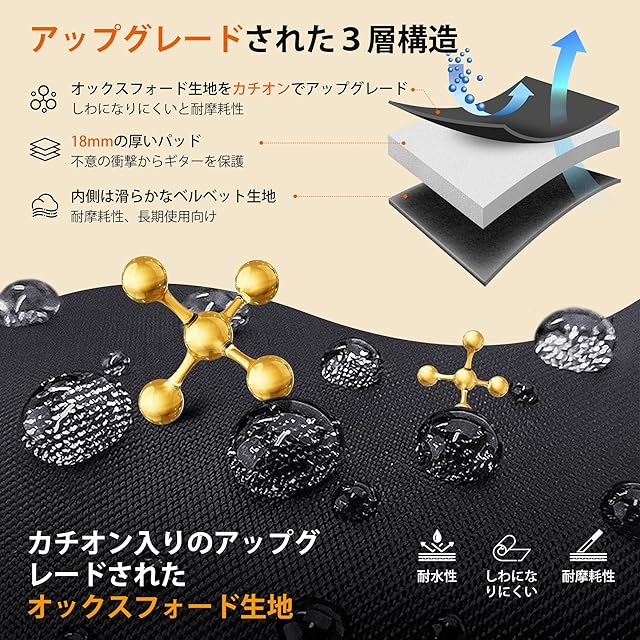 【頑丈&耐久】耐久性のあるベルクロネックストラップは、ギターをしっかりと固定し、ヘッドストックの内側を補強します。 高品質のツーウェイメタルジッパーは非常にスムーズにスライドし、簡単に動かなくなったり壊れたりすることはありません。頑丈なゴム製ベースは、日常の衝撃や衝撃からギターを保護します。