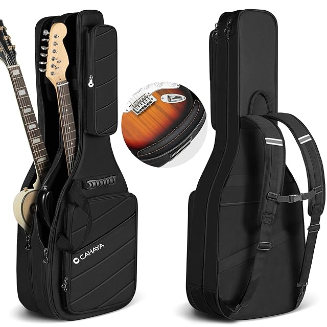 CAHAYA エレキギターケース 2本入れ 18mmスポンジ 大容量 ソフト ケース 肩掛け 手提げ 持ち運びに便利 CY00378-1