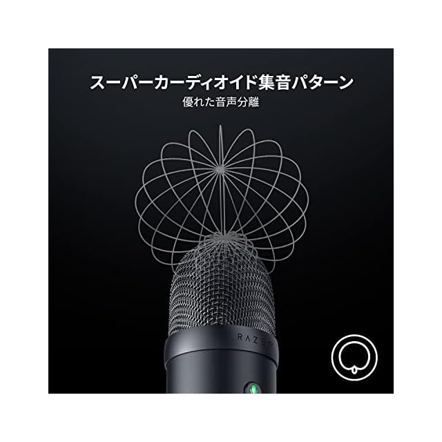 【スーパーカーディオイド集音パターン。】 Razer の USB コンデンサーマイクは、後ろや横からの周辺音を遮断する設計のため、タイピングの音やマウスのクリック音といった周辺音を拾うことなく音声をクリアにキャプチャできます。