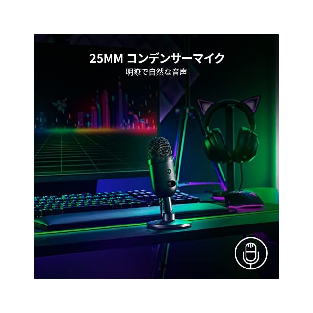 Razer Seiren V2 X USB 25mm コンデンサーマイク スーパーカーディオイド集音パターン アナログゲインリミッター マイクモニタリング ゲイン/ミュートボタン本体配置 内蔵型ショックアブソーバー搭載 【日本正規代理店保証品】