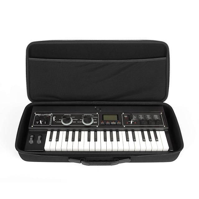 【特徴】本体を優しく守る柔らかいベルベット素材をインナーに採用 / ケーブル・アダプター収納用メッシュポケット / 衝撃に強い設計:高級感がある防水性の合成皮革(セミハード) / スーツケースやバックパックに収まりやすいサイズ (内寸 幅 55.88 cm × 奥行き 22.86 cm× 高さ 9.53 cm 外寸 幅 60.33 cm × 奥行き 27.94 cm × 高さ 9.53 cm , 重さ 0.9kg) 注)MicroKorg XL+は本体のサイズの仕様上、acアダプターをケースに同梱することができません。予めご了承ください。