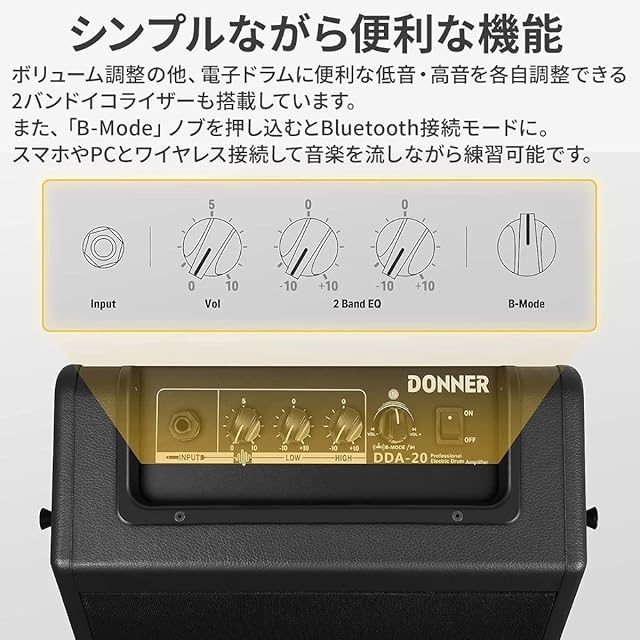 Donner アンプ 電子ドラム キーボード用 20W 外部 スピーカー 小型 ミニ ワイヤレス ブラック 日本語取扱説明書 DDA-20
