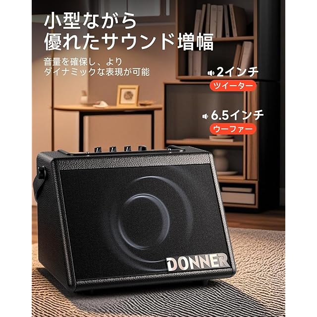 ✨【臨場感が溢れるサウンド】DDA-20ミニアンプの本体には6.5インチの低音スピーカーと2.0インチの高音スピーカーが搭載されています。20Wながら自宅練習はもちろん、レコーディング、ライブ・スペースでも十分耐えうる出力を確保