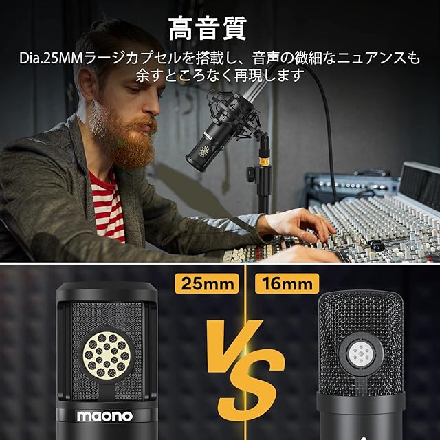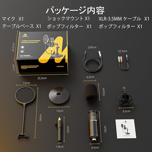 MAONO XLR-3.5mmマイク コンデンサーマイク マイクセット 単一指向性 配信用マイク アームスタンド/25mmラージカプセル 音響システム/アンプ/ミキサー向け 音楽製作/録音/生放送/YOUTUBE/ポッドキャストに適応(AU-PM325T)
