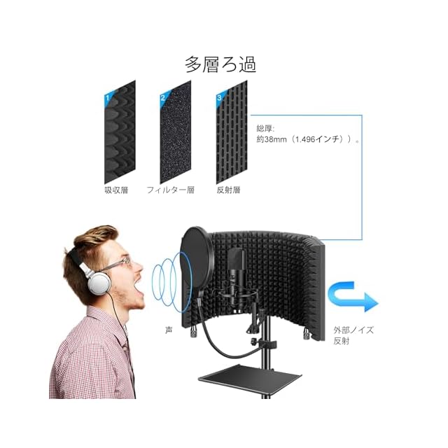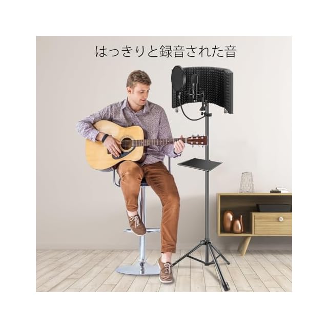 Aokeo マイク 防音 吸音材 シールド マイク分離シールド 折り畳み ボーカル録音放送用 放送用リフレクション・フィルター 録音吸音材(スタンド付きAO-505)