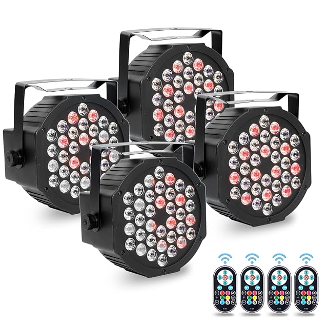 Rxakudedo ステージライト LED 舞台照明 ディスコライト ステージ照明 パーティ、 スポット、 DJ クラブ、 リモコン付き 音声起動 自走機能付き 36W RGB DMX512(4枚)