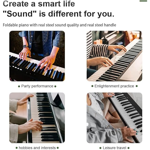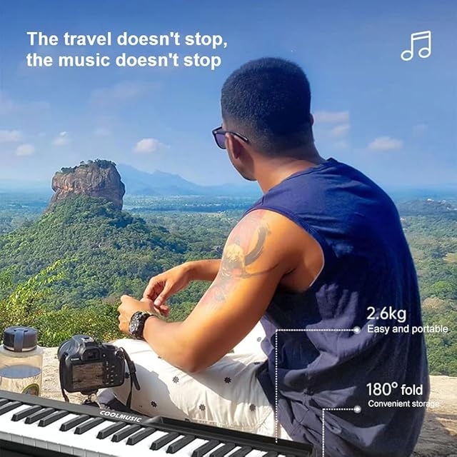 Coolmusic 88鍵ピアノキーボード 折りたたみ式BTデジタルピアノ ライトキー付き セミウェイテッドキーボードピアノ 充電式 ポータブル