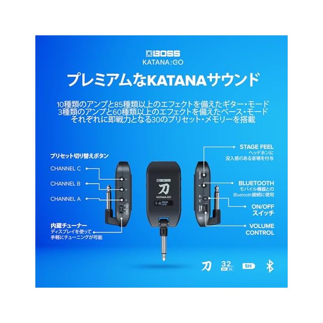 BOSS ボス KATANA:GO ヘッドフォン・ギター・アンプ ベース対応 60種類以上のエフェクト搭載 有機ELディスプレイ チューナー搭載 Bluetooth接続対応 スマホ録音可能