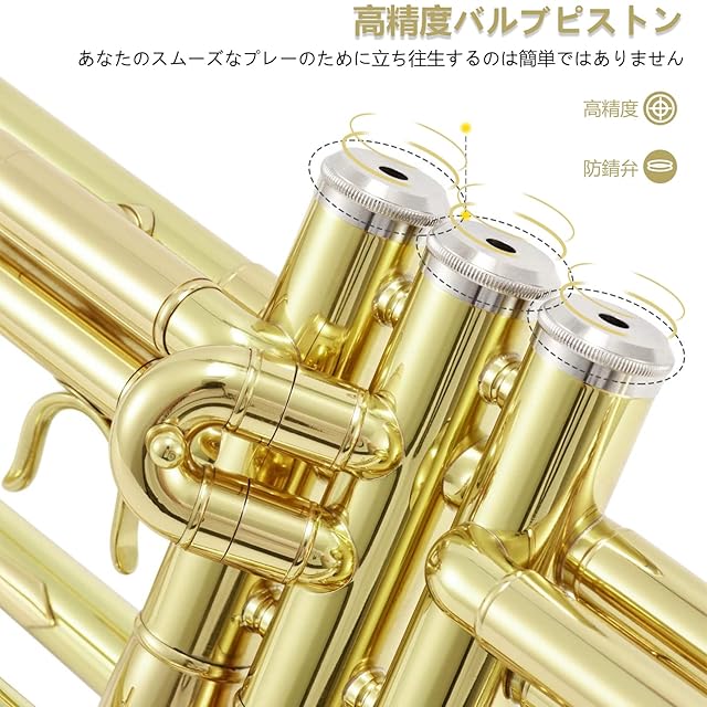 BQKOZFIN B♭ トランペット管楽器 吹奏楽 初心者入門セット 真鍮製 めっき加工