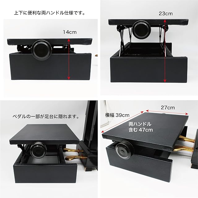 【仕様】足台上部の横幅 約39cm 奥行き 約27cm , 両ハンドルまで含めた横幅は 約47cmとなります。上下調整 約14cm〜23cm :両手ハンドルで上下調整が楽にできます。