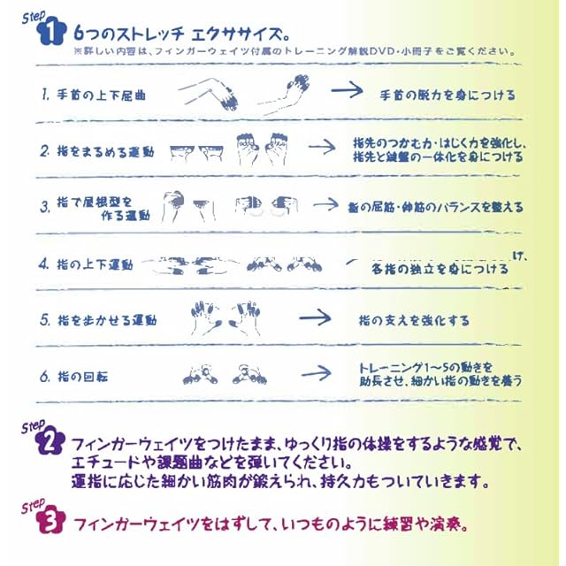 ピアノを弾く前のたった5分間のストレッチとして最適です。