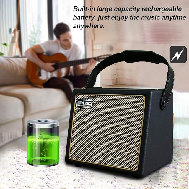 【ポータブル】: 繊細な木製シェルとコンパクトなサイズのデザインにより、ギターアンプはストラップを介してどこにでも簡単に持ち運ぶことができ、旅行での使用に非常に適しています。