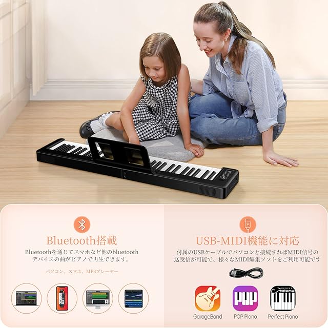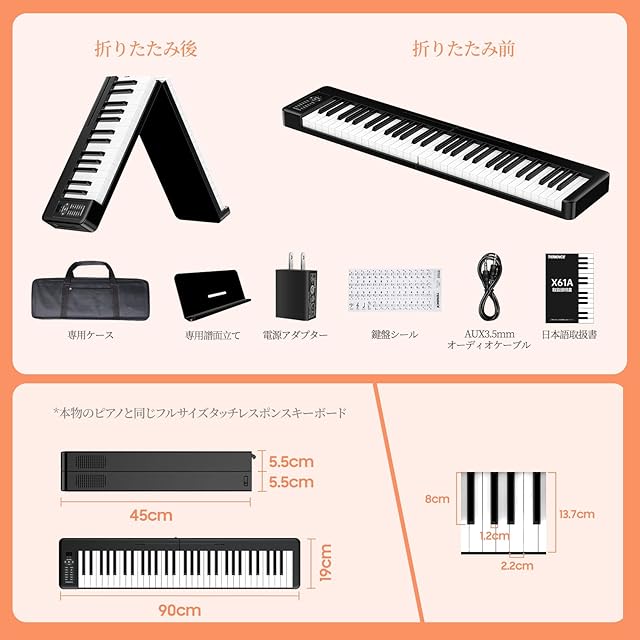 「家庭用にポータブル電子ピアノ」X61電子ピアノは折りたたみかつ軽量なデザインを採用しており、幅は半分を削減して省スペースと携帯性が両立実現でき、ご自宅内での移動、屋外での演奏や社団での練習などどんな場合でも気軽にご使用できます