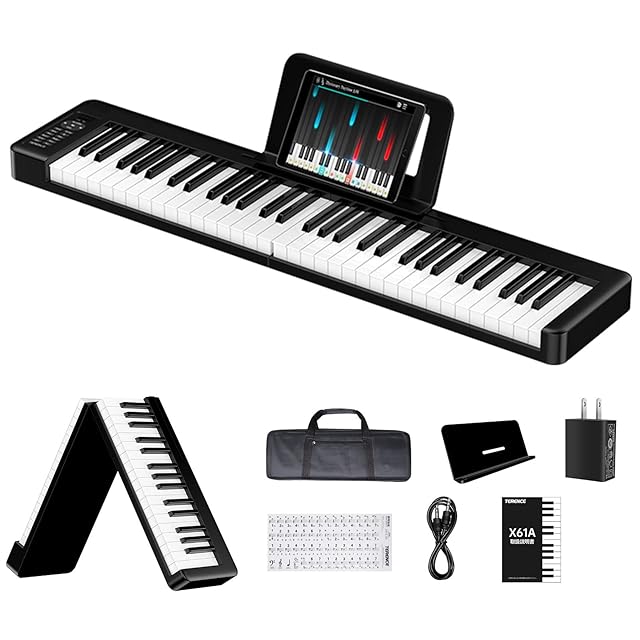TERENCE 電子ピアノ 折り畳み タッチレスポンス61鍵盤 初心者向け ピアノ練習にピッタリ ポータブル キーボードピアノ MIDI対応 メトロノーム/録音/プログラム機能 folding piano ペタル付き 日本語取扱説明書付き X61A