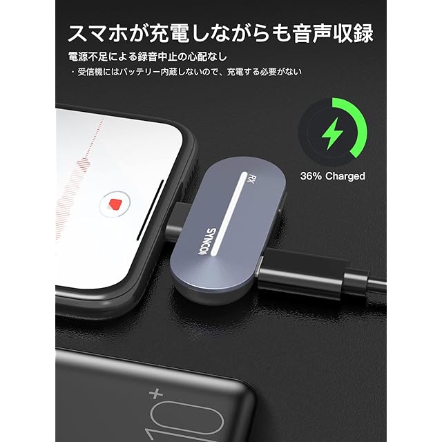 【電源不足の心配なし】P2STピンマイクは充電ケース持ち、より長い時間で使用可能で一日中の撮影をサポートします。受電機のType-Cポートを通じてスマホは音声収録しながら充電ができて、電源不足による録音中止の心配がありません。(備考:受信機はバッテリーが内蔵しないので、充電する必要がありません)
