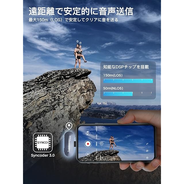 【長距離でも信号安定伝送】インテリジェントDSPチップとSyncoder 3.0同時符号化技術を採用し、SYNCO P2STスマホマイクは最大150m(LOS)の伝送距離を実現し、スマホ内蔵マイクよりもっと安定してクリアに録音することができます。YouTube動画制作、Vlog撮影、ショットビデオ撮影、インタビューなどでかなりお役立ちます。