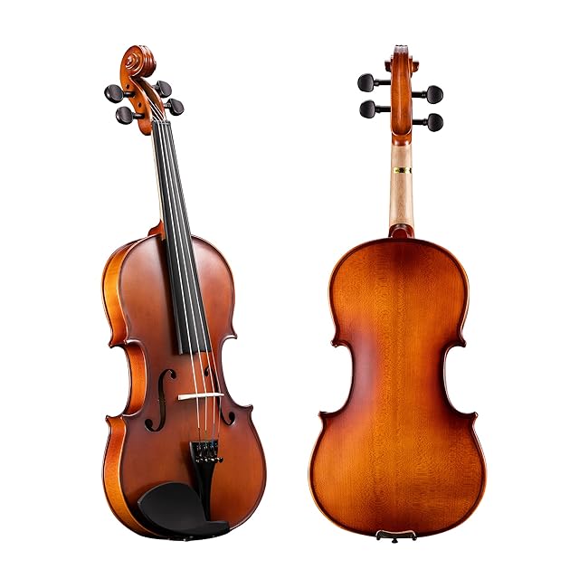 ADM バイオリン フルサイズ4/4 艶消し 初心者入門セット ケース、バイオリンスタンド、譜面台、弓、肩当て、チューナー、指板ステッカー、松脂付き、マットブラウン付き
