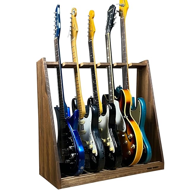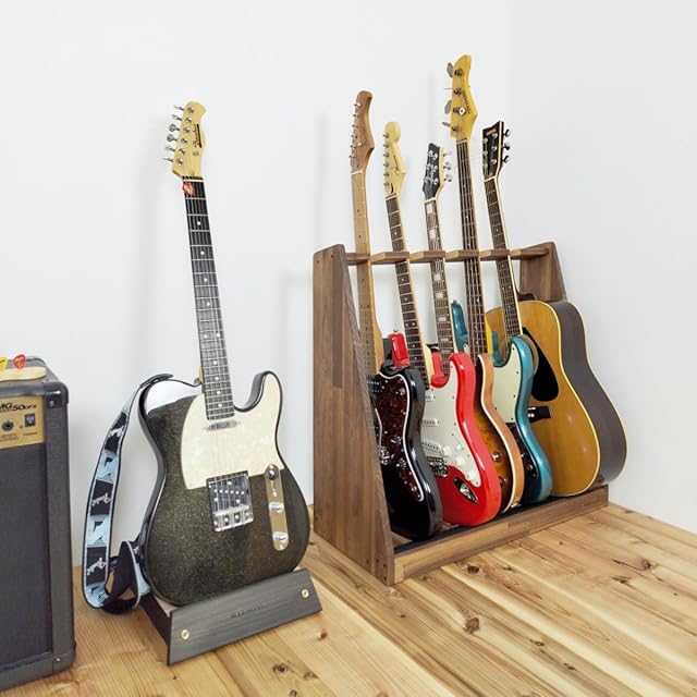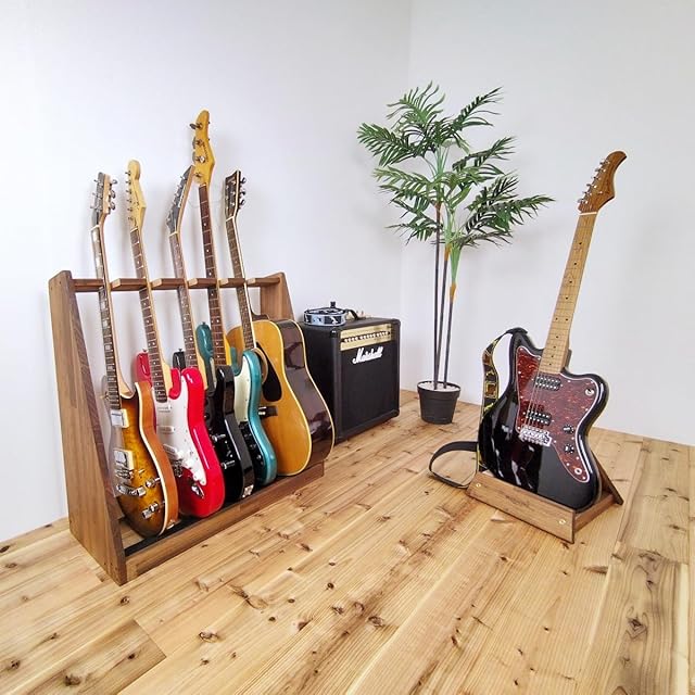 WOODWORKS 日本製 ギタースタンド エレキギター用 5本掛 (ブラウン)