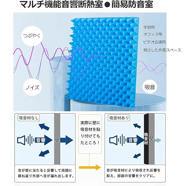 【音響断熱効果の改善】防音パネル、 吸音材の防音カバーは、内部に吸音綿で作られています。 このエンクロージャーは、一方でエコーとサウンドを低減し、他方で追加のノイズを排除します。 ご家庭、オフィス、レコーディングスタジオなどに最適です。クリアでクリーンなサウンドに最適な録音条件を作成します。