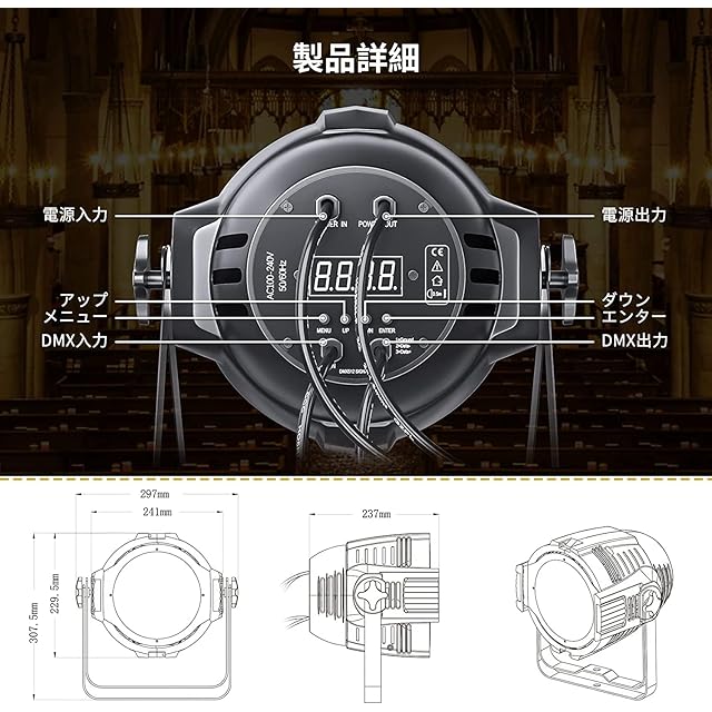【DMX512&マスタースレーブ】複数台使用、他照明との併用、煙の使用などに合わせてより高い演出効果を発揮します。Dmx out/in、power out/inは、デイジーチェーン接続をサポートしており、1つのプラグを接続して最大8個のライトを同時に操作できます。
