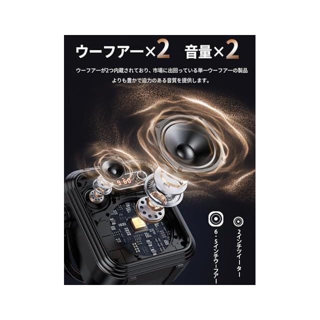【優れた音質(内蔵スピーカーx2)】より良い音質を実現するため、6.5インチのウーハーと2インチのツイーター(合計2個)を搭載し、本格的なオーディオ環境を構築し、立体感を作り出します。バスレフポートを搭載し、低音域がしっかりと響き、音にメリハリを与え、パワフルで大音量の透明感がある高低音質サウンドを楽しめます。