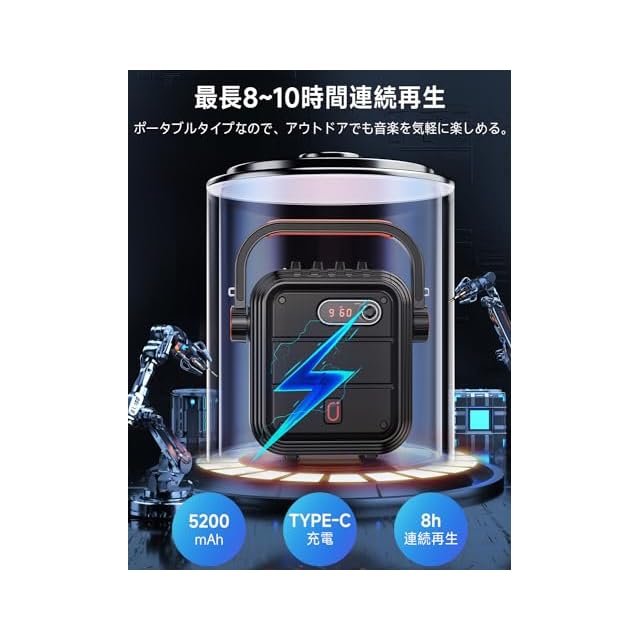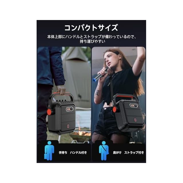 【コンパクト軽量&高容量バッテリー】重量は2.91KGです、軽くて運び便利、移動時に手軽に持ち運びできます。付属ストラップを付け、肩に掛けても重く感じません。高性能バッテリー(内蔵の3.7V / 5200mAh充電式大容量リチウムイオンバッテリーで)と低消費電力により、1回の充電で6~8時間連続最大パワーで音楽を再生できます(待機時間72時間、普通パワー音楽再生時間は10時間)。野外ライブ、BBQ、宣伝活動、校行事、セミナー、カラオケ、結婚式、盆踊りなどのイベントに活躍します。