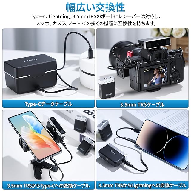 【セット内容&質量保証】送信機*2、受信機*1、充電ケース*1、防風ウインドマフ*2、3.5mm TRSケーブル*1、Type-CからType-Cへの変換ケーブル*1、3.5mm TRSからLightningへの変換ケーブル*1、Type-Cデータケーブル*1、収納袋*1、日本語取扱説明書*1。お買い上日より安心と信頼の12月間の保証期間がついております。万一初期不良品がございましたら、全額返金と交換できます。 ご注意:この製品は音声収集、録音機能のみ対応しており、アンプやスピーカーなどとしては使用できません。予めご了承ください。
