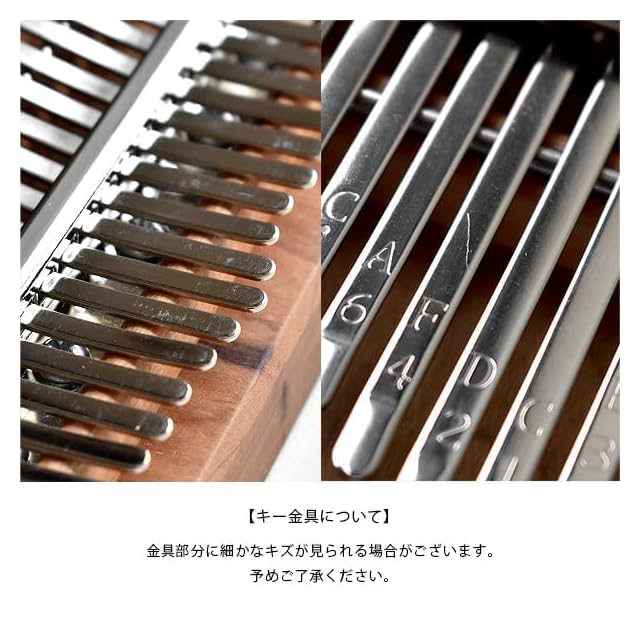キー金具(17音)には音階が刻印してあり、初心者でも簡単に演奏が可能。