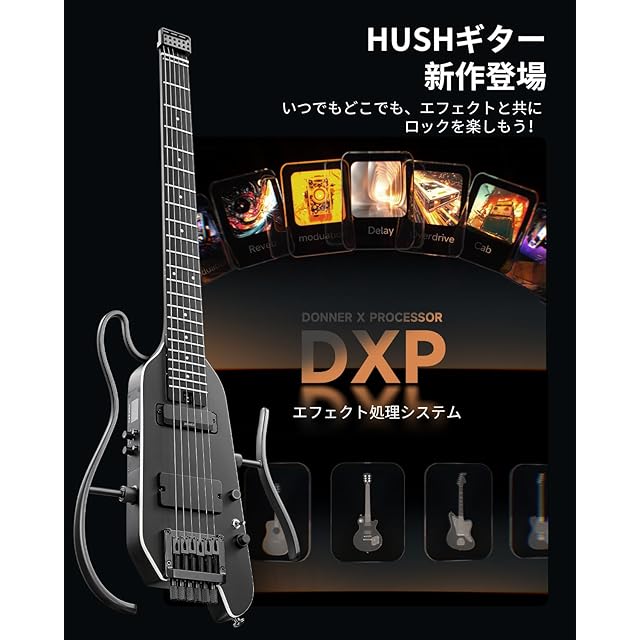 Donner HUSH-X PRO エレキギター スマートトラベルギター ヘッドレス 多彩なプリセット 7種のトーンシミュレーション ホワイト ブラック