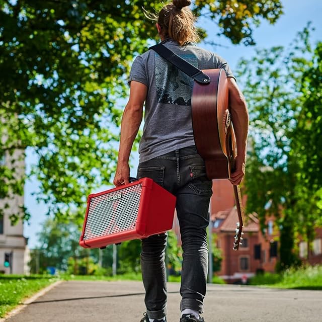 BOSS ボス ステレオアンプ CUBE Street II RD/CUBE-ST2-R 電池駆動 軽量設計 最大出力10W 持ち運び可能 ステレオ ストリートライブ/路上パフォーマンス/トークイベント/マイク/ギター/ベース キューブストリート2 レッド 赤