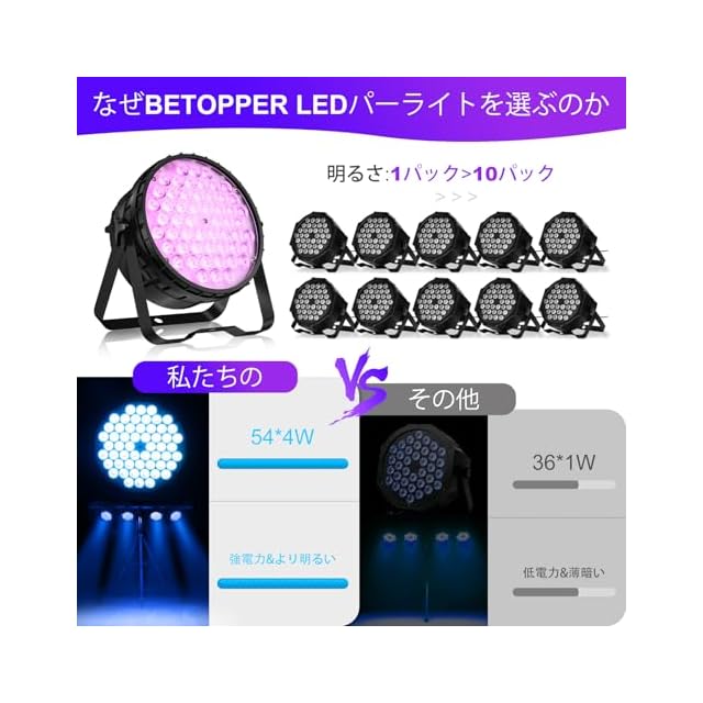 BETOPPER 54x4W 4 in 1 RGBW LEDステージライトCRI/RA>92撮影録画舞台照明5000 Lmスポットライト調光ディスコライトパーライトdj disco light for party カラオケパーティーライト, DMX512 4/8CH 専門設備 高輝度 音声連動 多色変更 舞台/演出/結婚式/パーティー/カラオケ/バー用(4個)