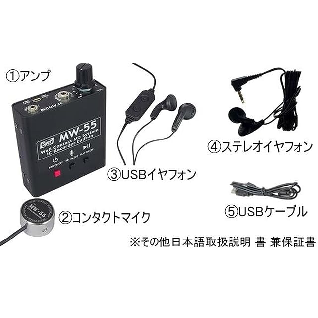 サンメカトロニクス 隣室集音マイク コンクリートマイク MW-55 【 録音 壁 2GB メモリ内蔵 充電式 電池交換不要 ピンタイプ オールインワンタイプ 高感度マイク クリア集音 】