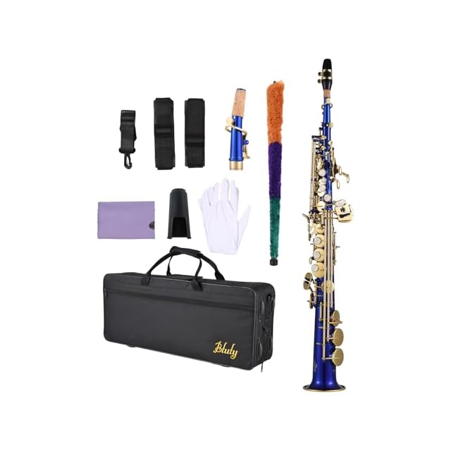 BCDYH 真鍮製 ストレート ソプラノサックス サックス Bb Bフラット 木管楽器 学生 初心者向け プロ仕様 ナチュラル シェルキー ソプラノサックス サックス キャリングケース 手袋 クリーニングクロス ストラップ クリーニングロッド付き