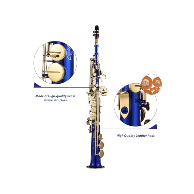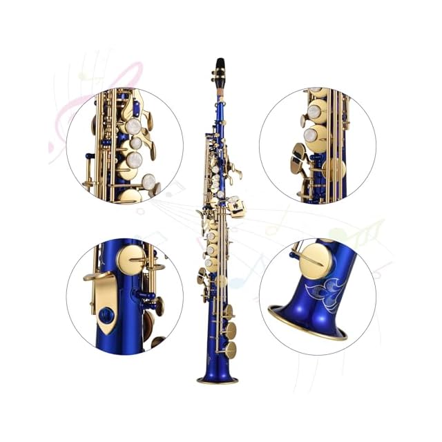 【高品質の真鍮構造】: このBフラットストレートソプラノサックスは高品質の真鍮製で、耐久性と長寿命を保証します。 高品質の構造により長期間の使用が可能で、初心者と経験豊富なプレーヤーの両方にとって信頼できる楽器です。