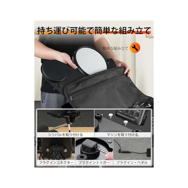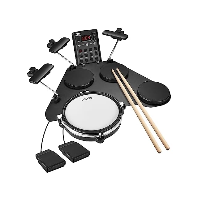 LEKATO 電子ドラムセット 静音メッシュ 折りたたみ式 付き初心者向け 電子ドラム 220種類以上のサウンド USB MIDI 2スイッチペダル スティック付き電子ドラムキット トラベルバッグ