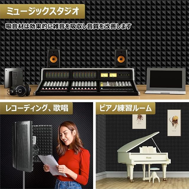 商品用途:①.ホームシアターやオーディオルームの音響調整と反響音対策に; ②.ピアノの調音やスピーカー音の音響調整に; ③.録音スタジオや宅録ブースなどの吸音材として; ④.窓の遮音や騒音低減に適しています。