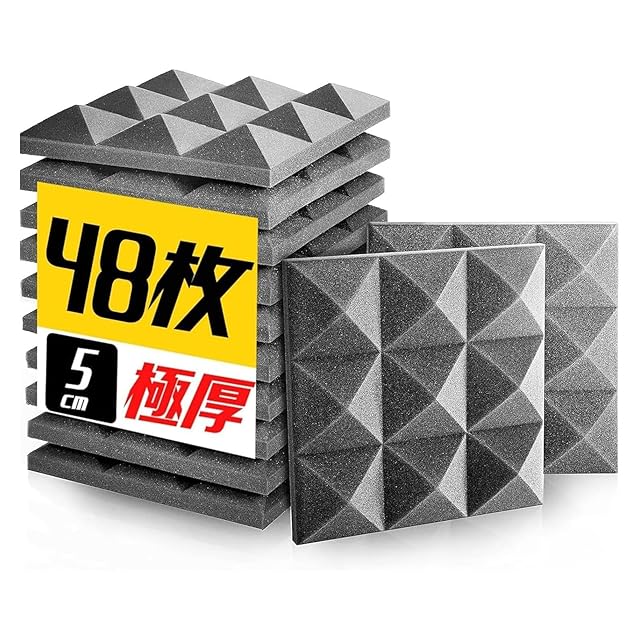 GOATRIP 防音グッズ 吸音ボード 吸音材 50*50*5cm 48枚 遮音シート 吸音パネル 消音 吸音対策 騒音軽減 防音シート 硬質吸音フェルトボード ウレタンフォーム 難燃 防潮 ピアノ室 楽器練習室 録音室 オフィス 室内装飾 強力両面テープ付き (gray, 48枚)