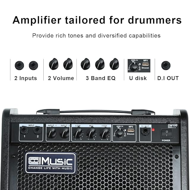Coolmusic 100W BTパーソナルモニターアンプ電気ドラムアンプスピーカー、キーボード、アコースティックギタースピーカー