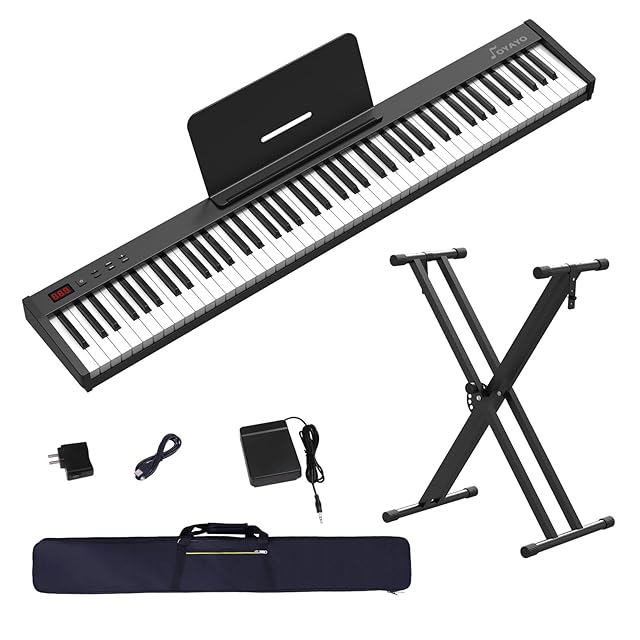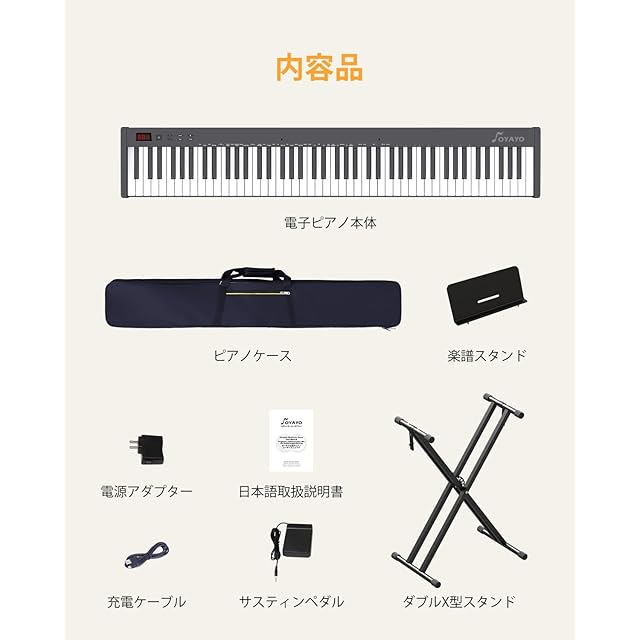 OYAYO 電子ピアノ 88鍵盤 KP88SX MIDI対応 コンパクト 軽量 タッチセンシティブ鍵盤 充電型 初心者 練習用 スタンド サステインペダル ソフトケース 日本語説明書付き (黒)