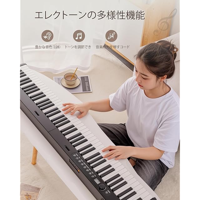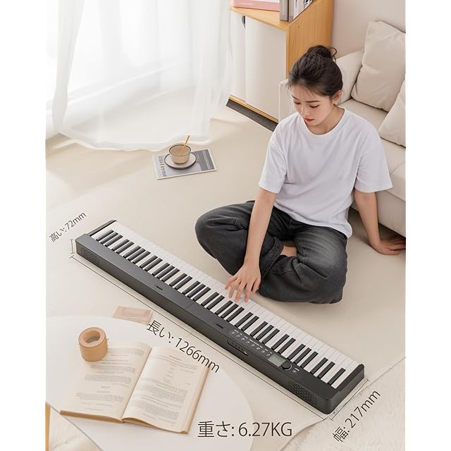 電子ピアノ 88鍵盤 折りたたみでき セミウェイトキーボード 軽量 卓上ピアノ 128音色 128リズム MIDI/Bluetooth付き 二つスピーカー付き 譜面台付き ナビゲーション機能付 子供と初心者向け
