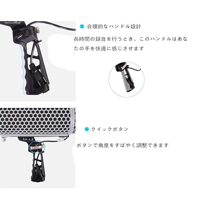 ➤【サポートブームポール】:ハンドルの下部にある3/8インチのネジ穴なので、3/8インチのネジでブームポールアームに接続できます