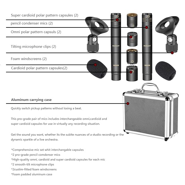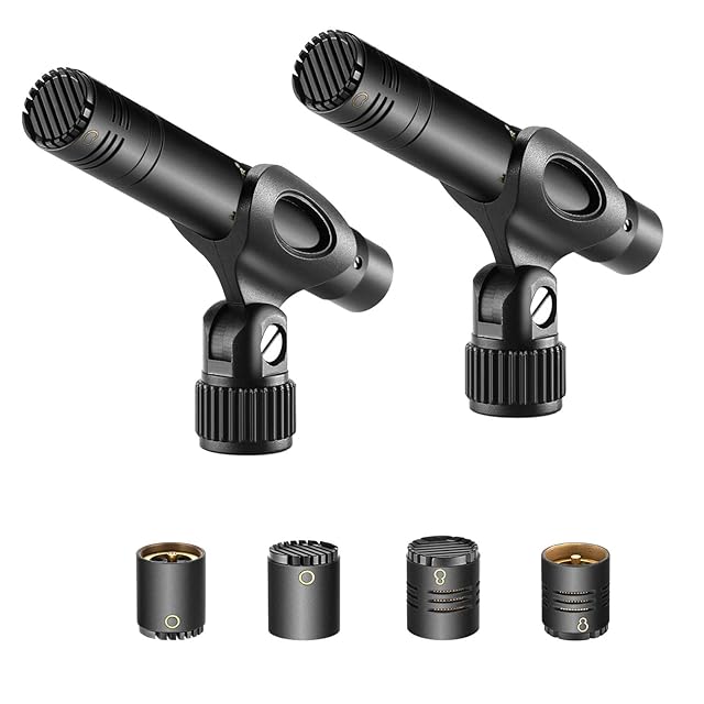 Neewer 2個鉛筆式のコンデンサーマイク 交換可能なオムニ、カーディオイド及びスーパーカーディオイドカプセル、ウインドスクリーン、マイククリップ、ポータブルキャリングケース付き アコースティック木管楽器に対応