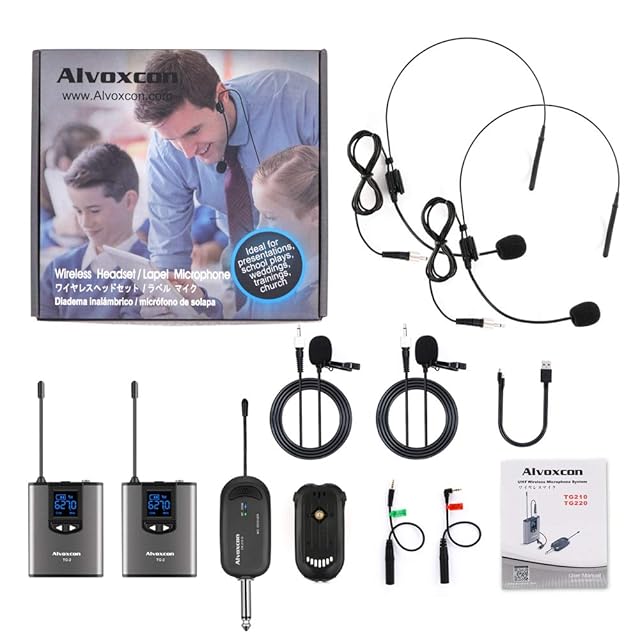 Alvoxcon ワイヤレスマイク UHF ピンマイク ワイヤレス ヘッドセットマイク クリップマイク ハンズフリーマイク 無線マイク 動画撮影 録音 拡声 カメラ スマホ 軽量 日本語取扱説明書付き 送信機*2 受信機*1 二人用 TG220