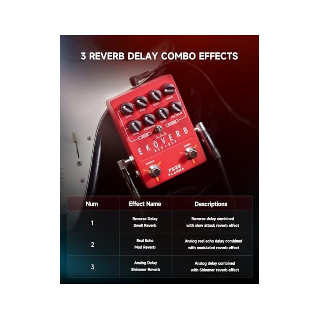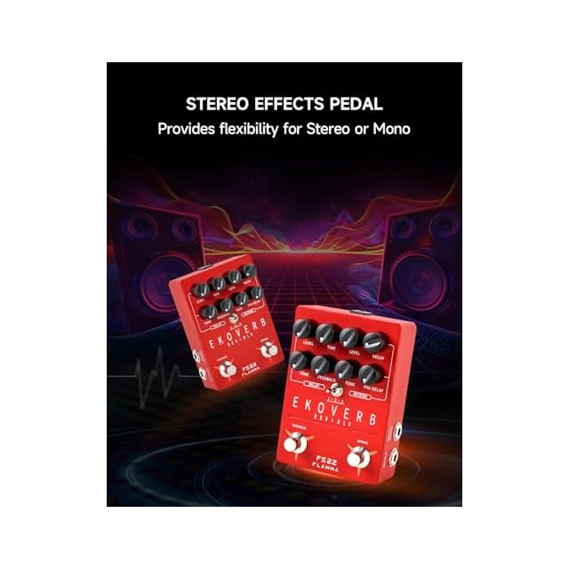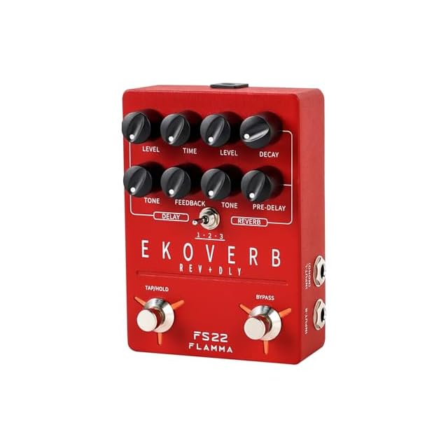 FLAMMA FS22ディレイとリバーブギターエフェクトペダルタップテンポフリーズトレイルオン機能付きレッドエフェクタATMOSPHERE Stereo Digital Effects Pedal