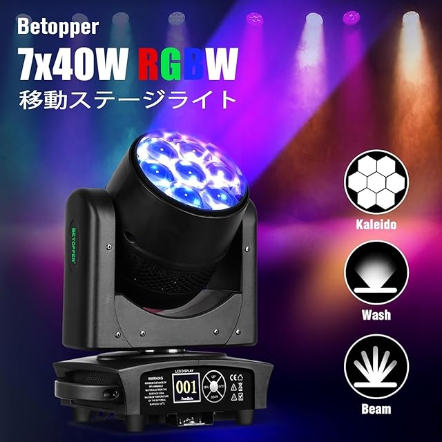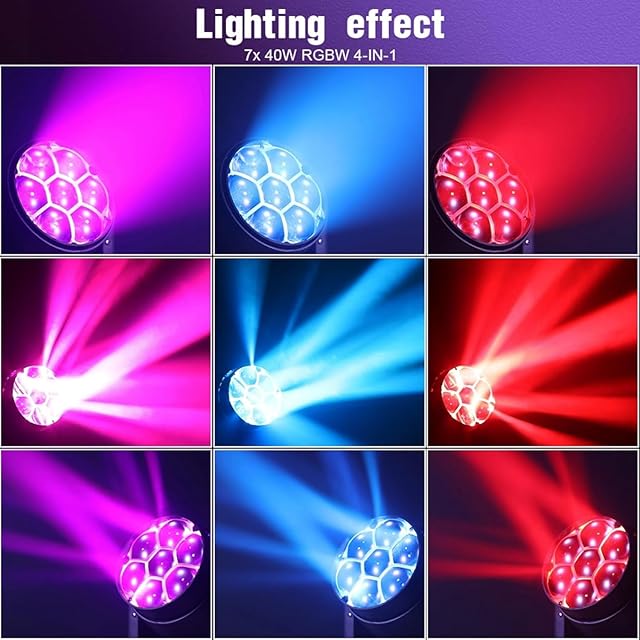 ◆複数のステージ照明モードと効果:7 x 40W RGBW 4-in-1 LEDビーズと2800Kから8500Kまでの色温度で、当社のムービングヘッドライトは、CTO、カラーミキシング、ズーム、渦巻きや万華鏡などの様々な効果モードなど、幅広い効果を提供します。