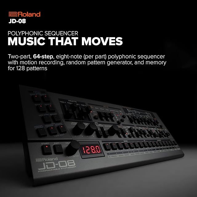 モーション・レコーディング、ランダム・パターン・ジェネレーター、および128パターンのメモリーを備えた2パート、64ステップ・ポリフォニック・シーケンサー