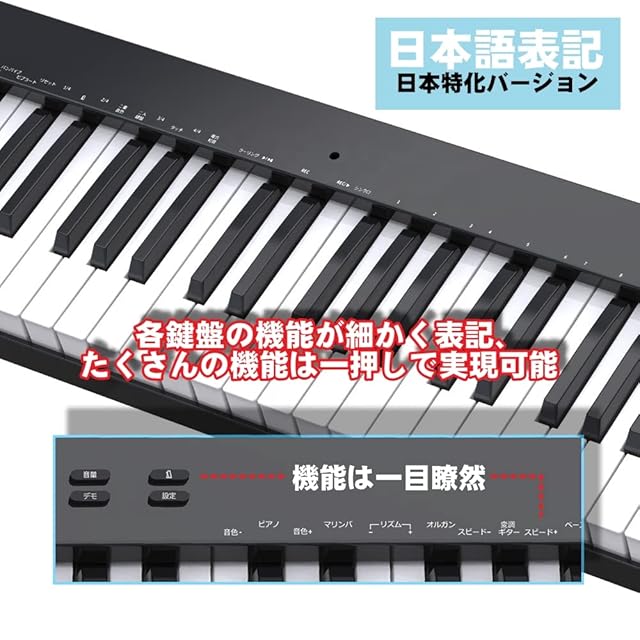 【付属品】練習用イヤホン(2Mケーブル)、初心者用鍵盤シール、バッグ、譜面台、ペダル、本体、充電器、充電ケーブル、日本語説明書も付属。購入日から30日以内無条件返品・返金保証、1年間無料修理、交換対応、お気軽に注文履歴で出品者にご連絡ください。注意:ご利用中に音が出ない、異常な音がでるなど不安定がある場合、電量不足になる可能性がありますので、まず3時間をフル充電してください。