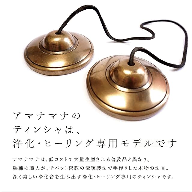 ✅【ティンシャの仕上がりについて】アマナマナのティンシャは、一つひとつが手作りの法具のため、形・色・模様・柄・音の響きにも個体差があります。また、手作りによるくぼみ、ゆがみ、細かいキズ、シミ、ムラ、均一でない厚み、円のライン、模様や柄などは、音色や響きの良さ、手作りの風合いや質感、法具の目的を重視し、見栄えを良くする機械加工や調整をしていません。仕様としてご理解いただければ幸いです。