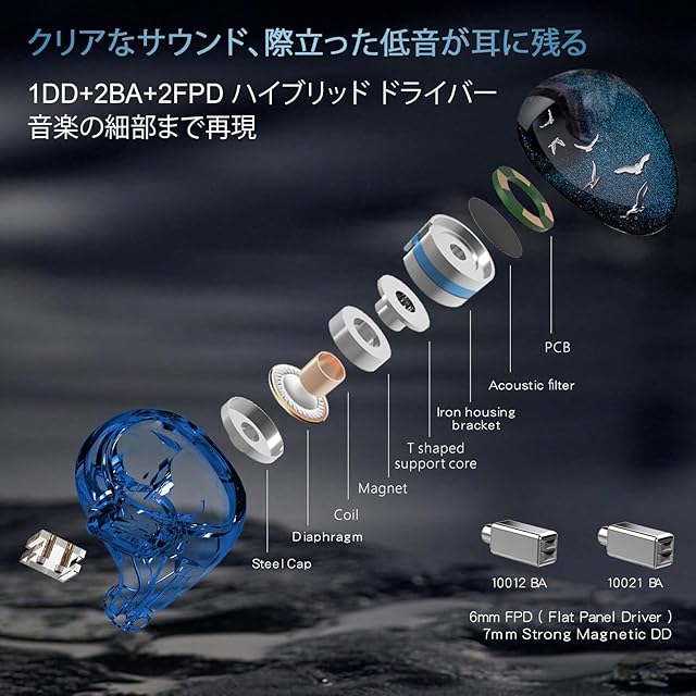 【ドライバー構成】: 「Phoenixcall」は、低域用に 7mm の強力な磁気コイル、中域用にカスタマイズされた BA ドライバー、中高域用に別のカスタマイズされた BA ドライバー、および超高域用に 2 つのマイクロ平面ドライバー (フラット パネル ドライバー) を使用します。 -高周波。 慎重な周波数分割チューニングにより、力強い低音、正確な中音域、甘い高音の特性を実現し、全体的に明るく透明感のある自然なサウンドを実現し、ポップミュージックに適しています。