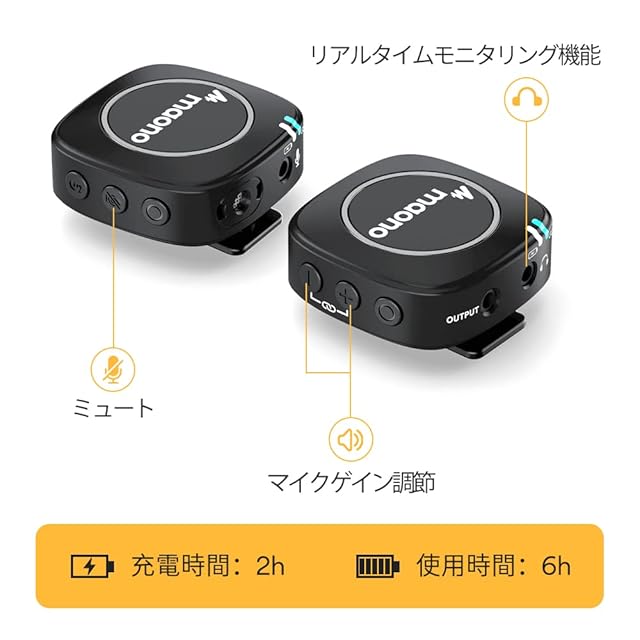 ♬【モニタリング機能&ミュートボタン】受信機に3.5mmTRSヘッドフォンジャックを利用して、ダイレクトモニタリング機能を実現します。ミュートボタンで、会議、インタビューなど静音が必要なときに、ワンタッチですぐミュートになり、 もっと便利です。